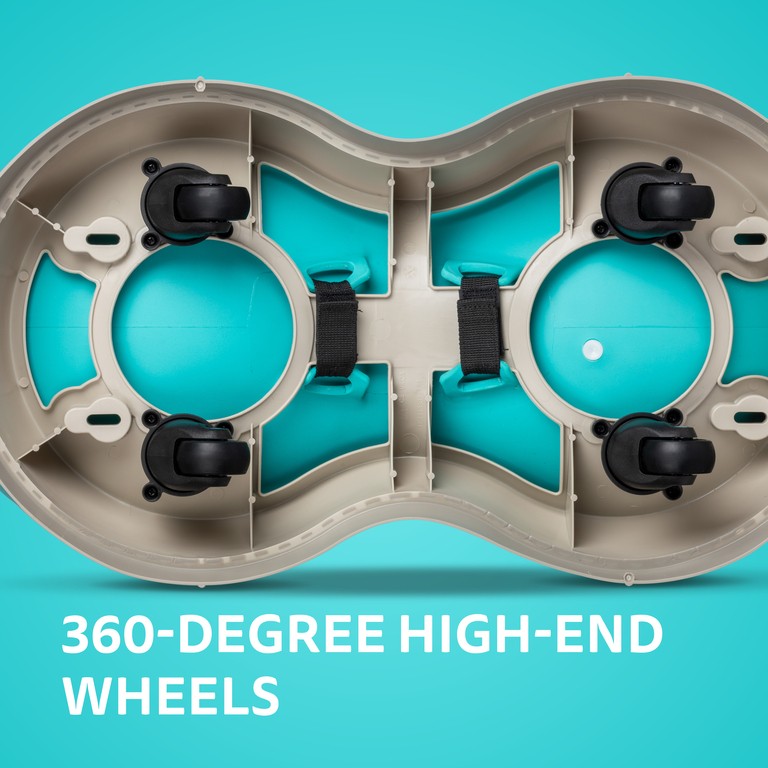 For children 18 to 36 months old; Max Load: 25kg; Total length: 580mm; Wheel size: 43*19mm; Wheel Material: PU; Wheel Hardness: Shore A 60; Bearing: 360 rotation bearings; Seat Material: PVC 85 Shore A; Seat Height: 310mm; Product Weight: 2.4 kg; Available colours: Blue and Pink;Bounce and glide for double the joy – Elevate the excitement!