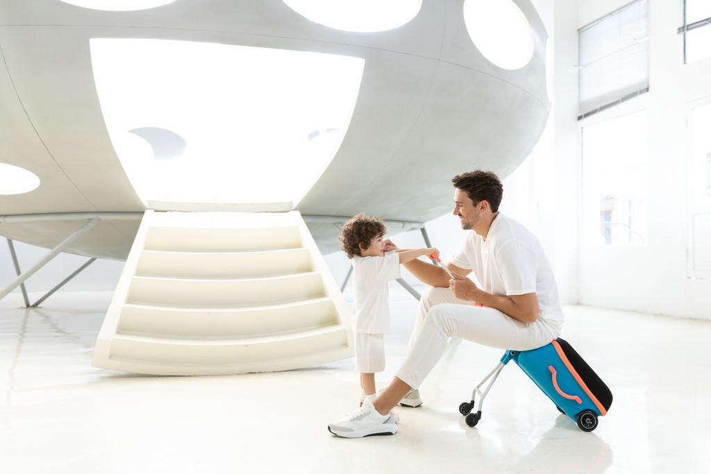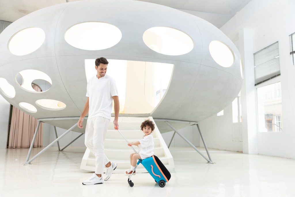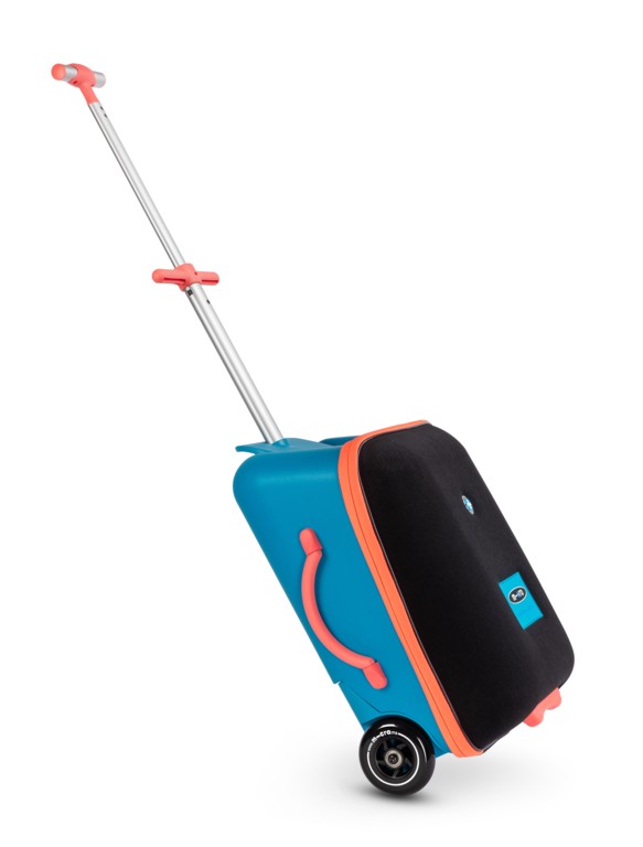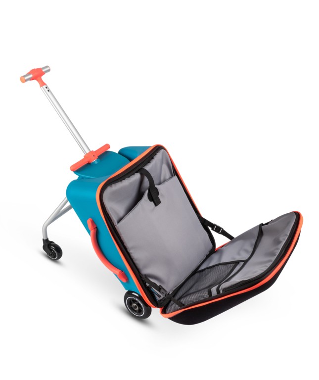 Weight: 4 kg Ideal for: City & commuter, Travel, Shopping & Trips Approved as hand luggage Product Kind: Kickboard with case Kind of Wheel: Hard rubber (PU) Maximum Load: 50kg Maximum Load for seat: 20kg Capacity: 22Liters Seat Height: 38cm Special Features: Height-adjustable handlebarSuitcase, trolley and kids buggy combined!The Micro Ride On Luggage Eazy is the must-have among trendy, practical travel-gadgets ! You can leave the buggy at home from now on, because this smart travel companion converts from trolley to child´s ride-on vehicle in an instant ! Kids enjoy the opportunity to sit and ride, you have one hand free and your luggage is also neatly stowed – all is well, nice and relaxed ! If the kids are not with you, simply use the trolley as a shopping companion or for your hand luggage while travelling.