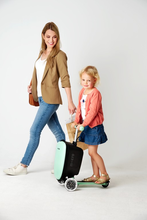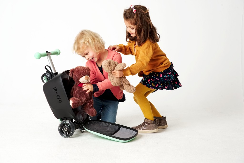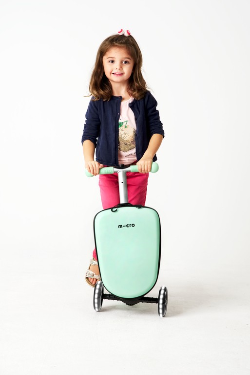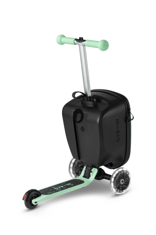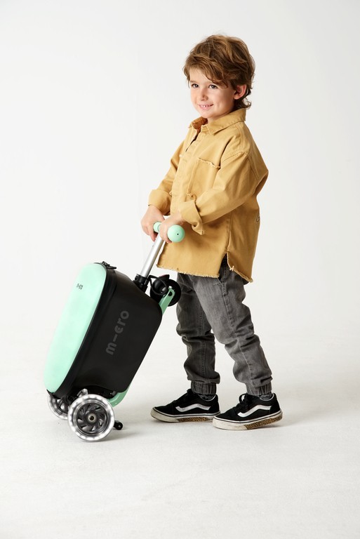 The new Micro Luggage Junior is children's luggage and scooter in one and thus the perfect companion for the little ones. The children's suitcase with built-in kickboard can be driven, pulled and pushed. Whereby pushing offers a significant ergonomic advantage for the child by protecting the wrist and muscles. Thanks to the height-adjustable handlebar, the product grows with the child and accompanies him up to primary school age. The Micro Luggage Junior can be transformed from a trolley into a kickboard and vice versa in a flash by means of two simple handles. Its compact dimensions make it easy to take along on planes, trains or in the car. From now on, the little ones can transport their favorite toys themselves and parents can relax and enjoy the trip.