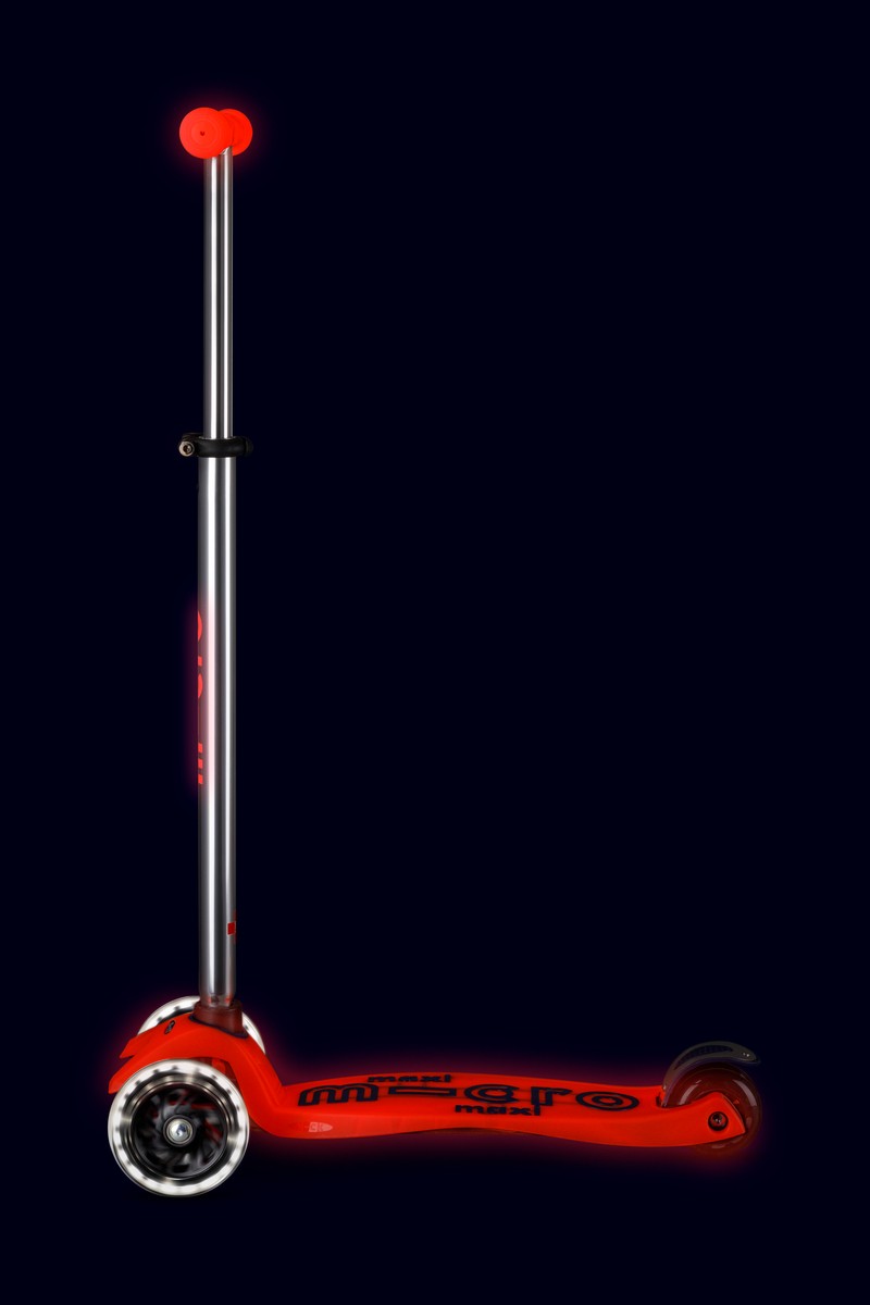 The Maxi Micro Deluxe Glow LED scooter is powered by the natural energy of sunlight for artificial UV light. Just let it soak up the sun during the day and it’s ready to light up the night with its radiant glow.