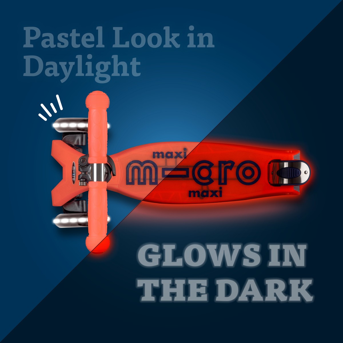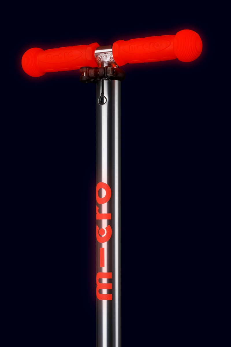 The Maxi Micro Deluxe Glow LED scooter is the ultimate companion for your child’s daily adventures! Experience how your Childs ride becomes an exciting adventure thanks to the enchanting glow in the dark elements. From the elegant deck to the ergonomic grips and handlebar logo, every detail of this scooter is designed to add a touch of magic to each ride.