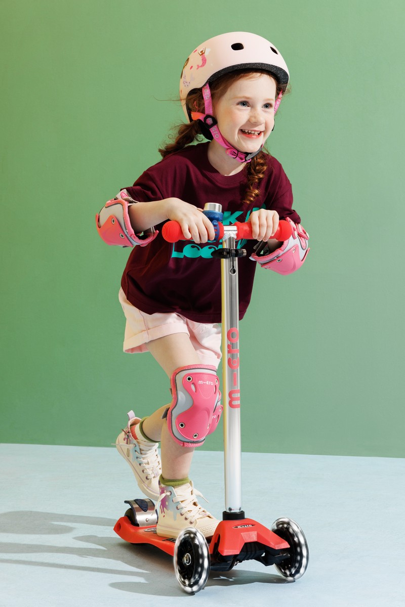 The Maxi Micro Deluxe Glow LED scooter not only offers an exciting experience, but also places great emphasis on safety. With its robust construction and reliable braking system, you can rest assured that your child is protected as they explore the world around them.