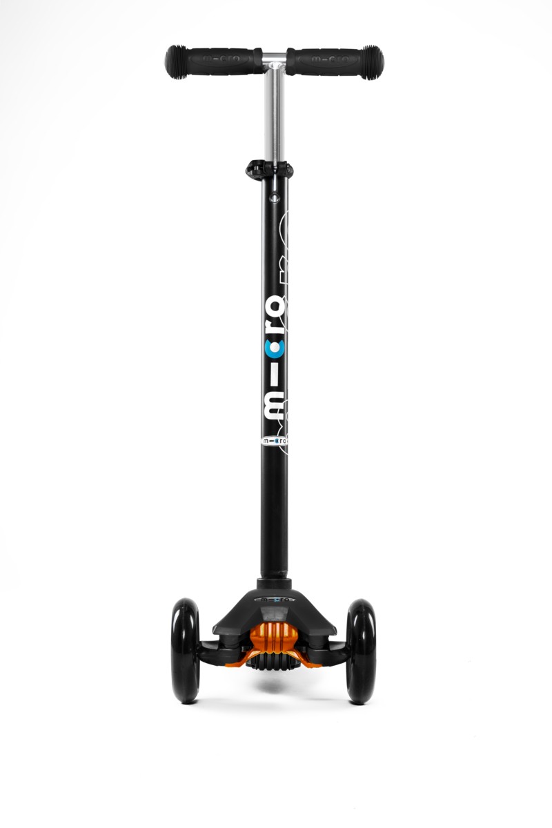 For children 5 to 12 years old Max Load: 50 kg Three wheels for superior stability Wheel size: 120/80mm Wheel Material: PU Tbar Height: 67cm - 91cm Tbar Removable and Adjustable Product Weight: 2,5 kg Available colours: Blue, Pink, Red, Green, Orange, Purple and Black Patented, Swiss designFor future kickboarders! Too big for the Mini Micro but still too small to switch to adult scooters or kickboards? Well then, welcome to the Maxi Micro! Just like the Mini Micro the Maxi Micro also provides a unique riding experience thanks to its patented weight transfer steering system. The Maxi Micro comes in various trendy colors.