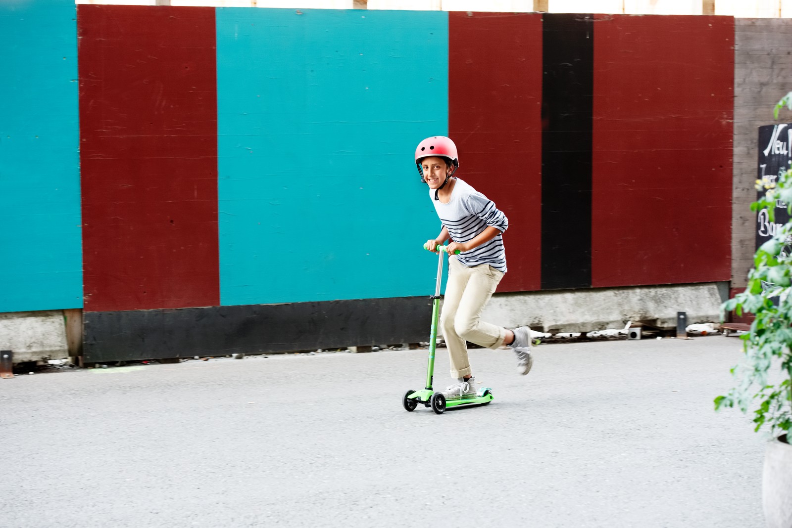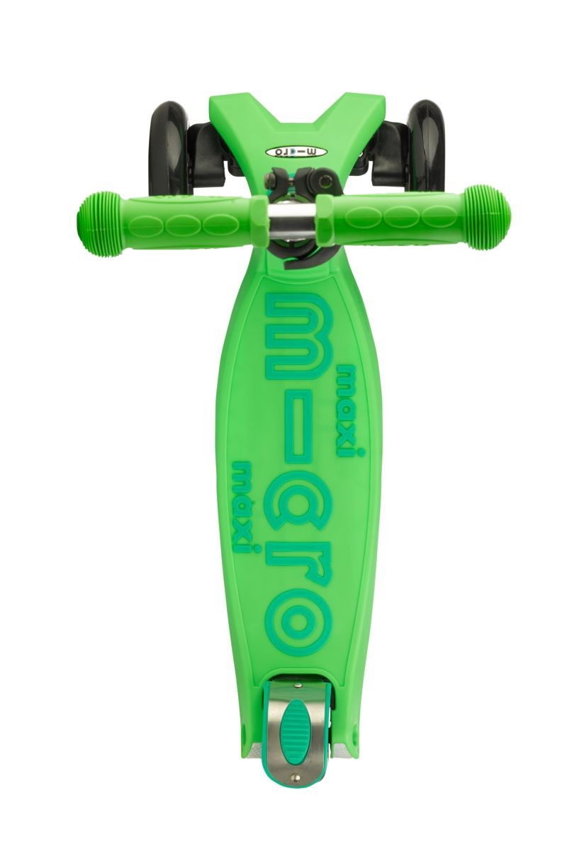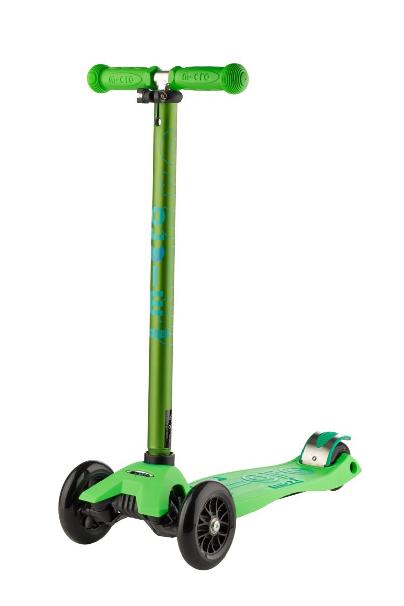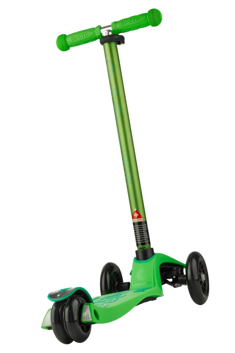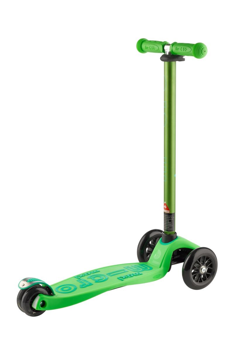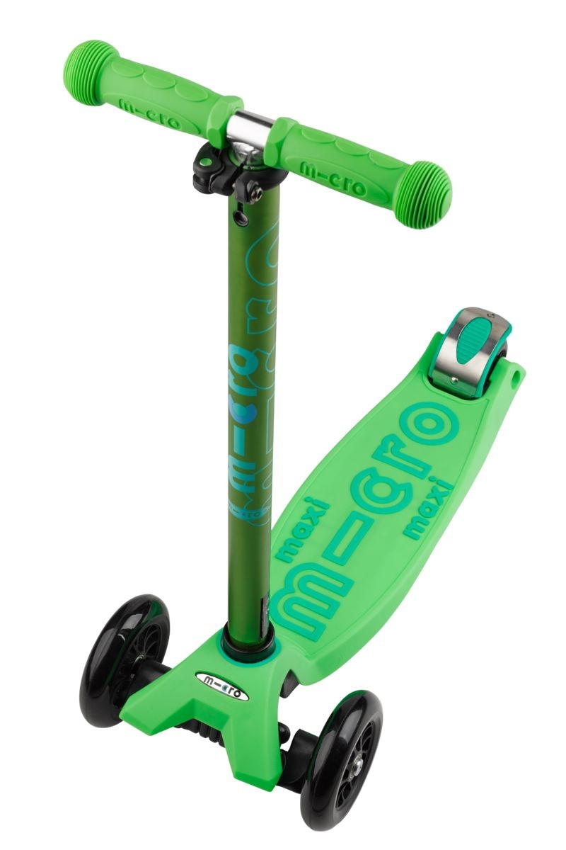 For children 5 to 12 years old Max Load: 50 kg Three wheels for superior stability Wheel size: 120/80mm Wheel Material: PU Tbar Height: 67cm - 91cm Tbar Removable and Adjustable Product Weight: 2,5 kg Available colours: Blue, Pink, Red, Green, and Purple Patented, Swiss designAdditional grip on the deck for a safer ride! The Maxi Micro Deluxe is the follow-up product to the Mini Micro, especially designed for kids who have outgrown the Mini Micro but are still too small and too light for the aluminium kickboards. The deck can carry a body weight of up to 50 kg. It only weighs 2.5 kg, therefore steering is particularly easy and you practically glide over the asphalt. The additional grip on the deck gives the rider a secure hold, and the anodised handlebar adds to the very classy appearance of the Maxi Micro Deluxe.