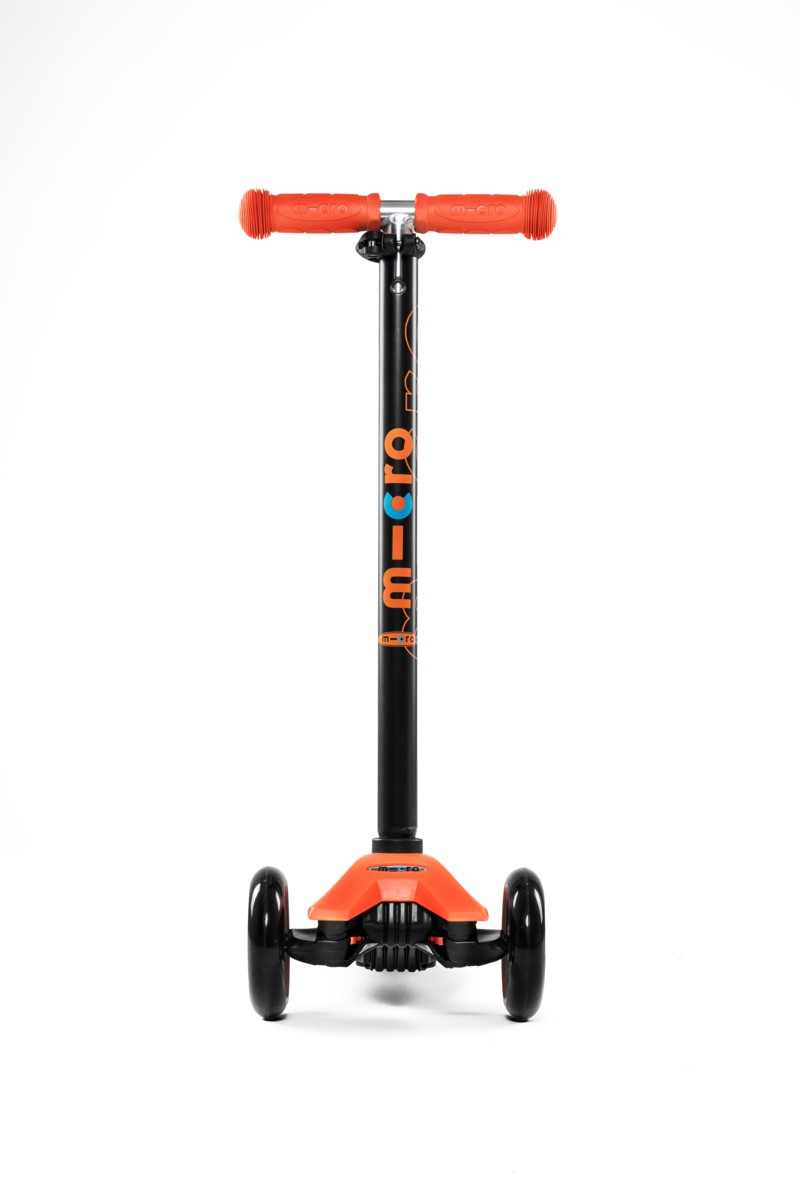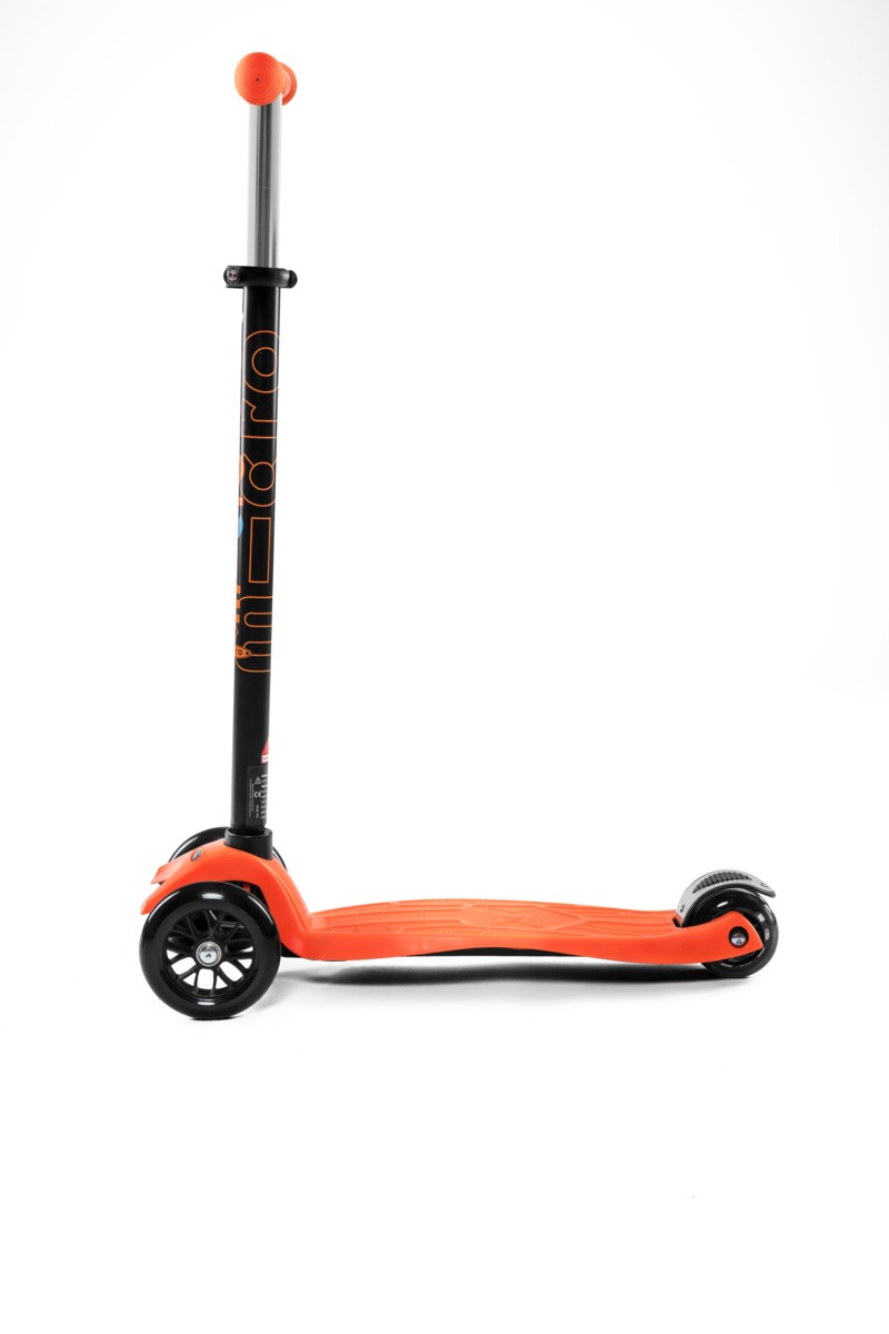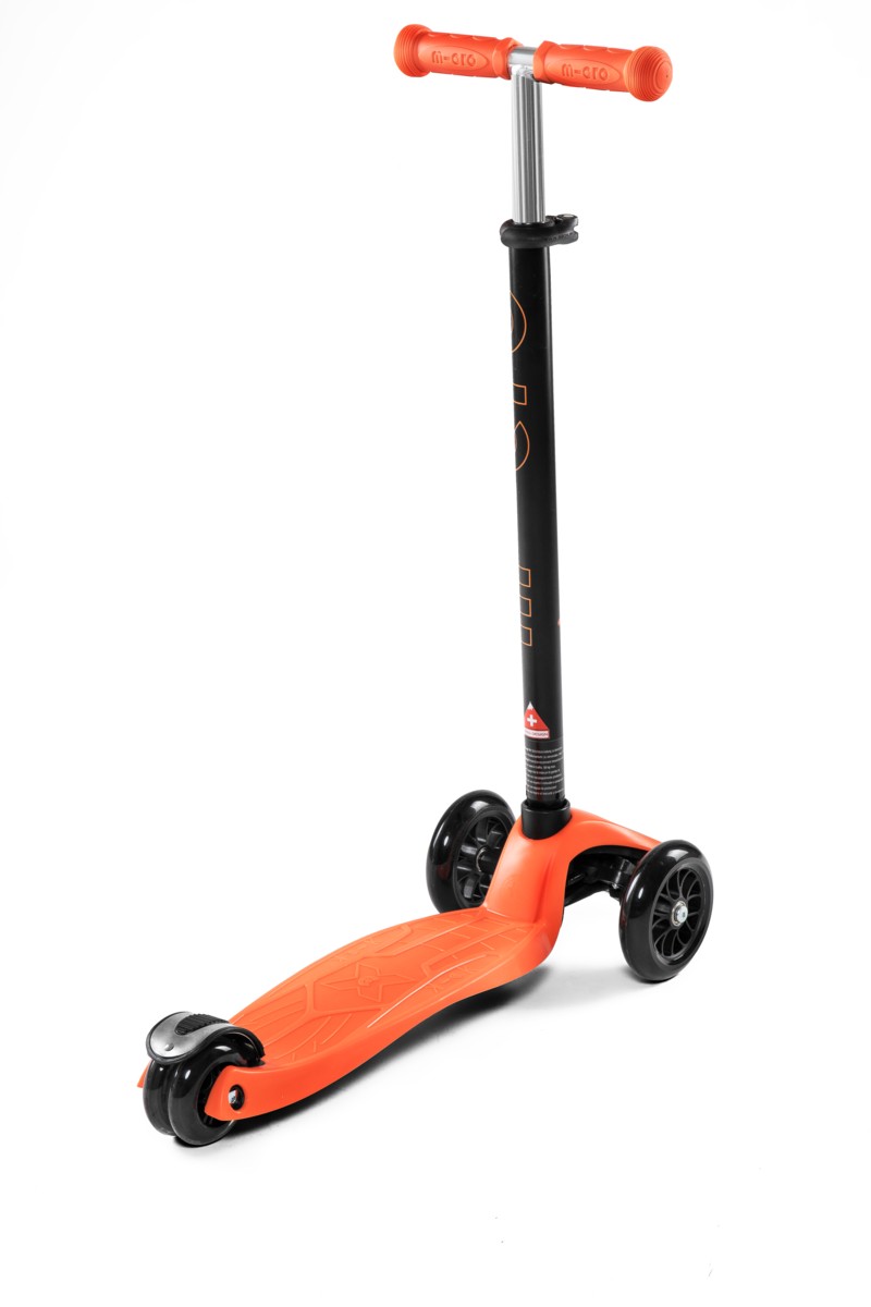 For children 5 to 12 years old Max Load: 50 kg Three wheels for superior stability Wheel size: 120/80mm Wheel Material: PU Tbar Height: 67cm - 91cm Tbar Removable and Adjustable Product Weight: 2,5 kg Available colours: Blue, Pink, Red, Green, Orange, Purple and Black Patented, Swiss designFor future kickboarders! Too big for the Mini Micro but still too small to switch to adult scooters or kickboards? Well then, welcome to the Maxi Micro! Just like the Mini Micro the Maxi Micro also provides a unique riding experience thanks to its patented weight transfer steering system. The Maxi Micro comes in various trendy colors.