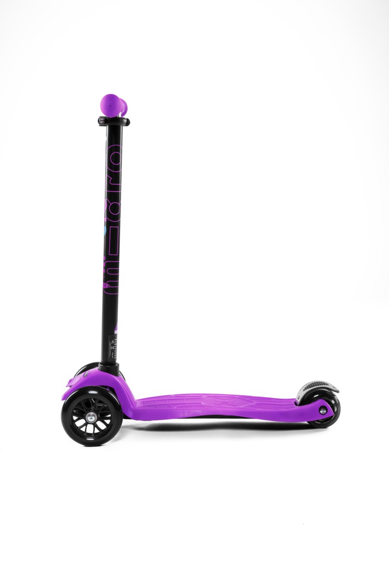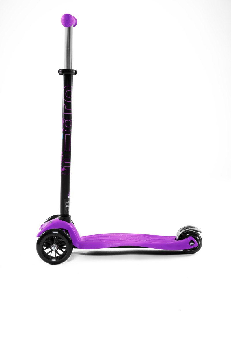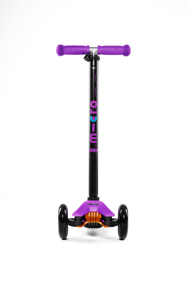 For children 5 to 12 years old Max Load: 50 kg Three wheels for superior stability Wheel size: 120/80mm Wheel Material: PU Tbar Height: 67cm - 91cm Tbar Removable and Adjustable Product Weight: 2,5 kg Available colours: Blue, Pink, Red, Green, Orange, Purple and Black Patented, Swiss designFor future kickboarders! Too big for the Mini Micro but still too small to switch to adult scooters or kickboards? Well then, welcome to the Maxi Micro! Just like the Mini Micro the Maxi Micro also provides a unique riding experience thanks to its patented weight transfer steering system. The Maxi Micro comes in various trendy colors.