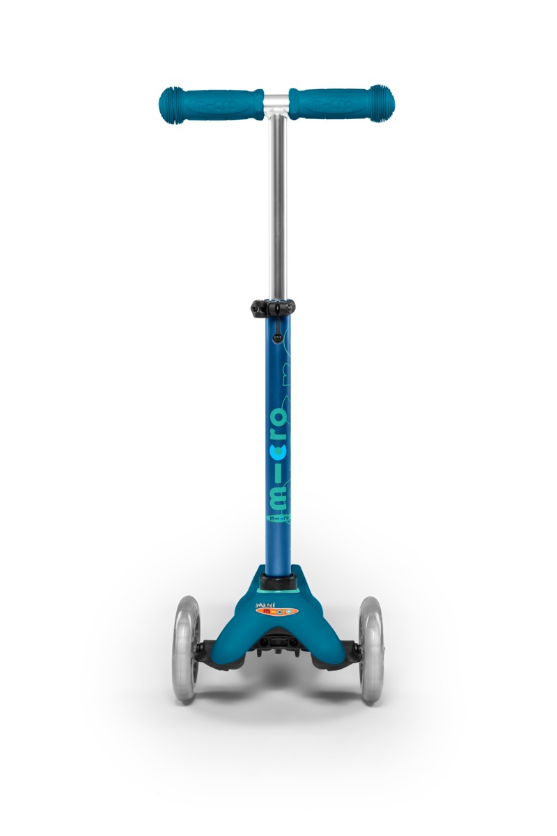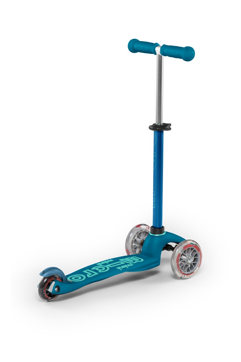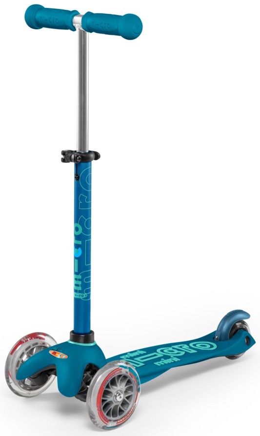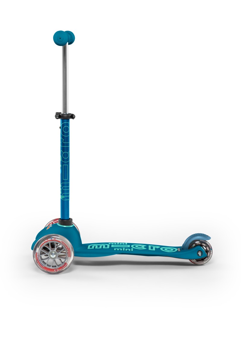 For children 2 to 5 years old Max Load: 50kg Three wheels for superior stability Wheel size: 120/80mm Wheel Material: PU Tbar Height: 49-67cm Tbar Removable Lowered board with strengthening flexiglass Product Weight: 1,95 kg Available colours: Ice Blue, Lavender, Orange and Ruby Red Patented, Swiss designJust like the MINI MICRO but with height-adjustable handlebar! Surfing the sidewalk – the Mini Micro was elected Toy of the Year by kids and parents several times ! This sports toy not only encourages movement and exercise, it also helps children to improve balance, coordination and motor skills. The Mini Micro Deluxe was specifically developed for toddlers and preschoolers in collaboration with Swiss medical professionals. The T-tube handle makes it even safer and has a safety lock so that only parents can remove it, when needed, for storing. The Mini Micro‘s unique lean-and-steer mechanism is patented and the deck is reinforced with fiberglass. The soft plastic and rounded edges make it easier for younger children to handle and helps avoid injuries. Now available as DELUXE version !