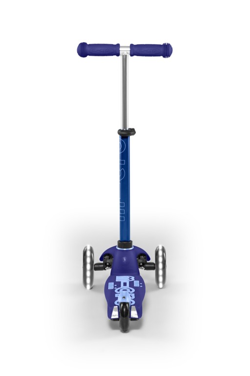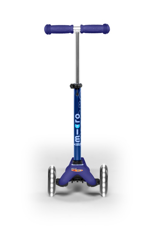 For children 2 to 5 years old Max Load: 50kg Three wheels for superior stability Wheel size: 120/80mm Wheel Material: PU Tbar Height: 49-67cm Tbar Removable and adjustable Lowered board with strengthening flexiglass Deck: Reinforced fibreglass PA, Extra grippy silicone mouldings Product Weight: 1,95 kg Available colours: Blue, Purple, and Red Patented, Swiss designThis Micro Scooter glows with motion-powered LED wheels generated through dynamo mechanics. The wheels’ dazzling illumination not only makes riding your scooter more fun, it also enhances your visibility in the dark. In contrast to the classic Mini Micro, the Deluxe version has a height-adjustable handlebar, which is equipped with a safety system for children. However, parents can still easily remove the handlebar to stow the scooter under the stroller or in the trunk. The non-slip silicone footboard provides additional support and a safe ride. Thanks to the patented steering mechanism, this unique toy promotes not only movement but also balance and motor skills of the little ones. It was developed in cooperation with medical specialists especially for pre-school children. With the large selection of colours, every child will find their new favourite scooter!