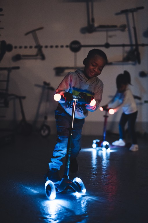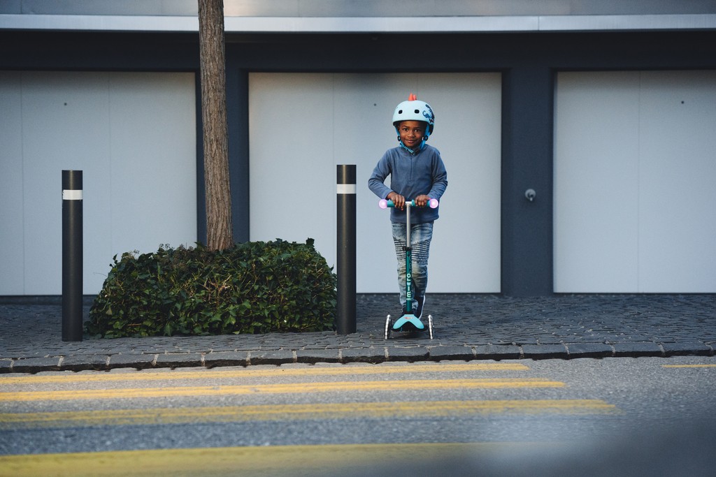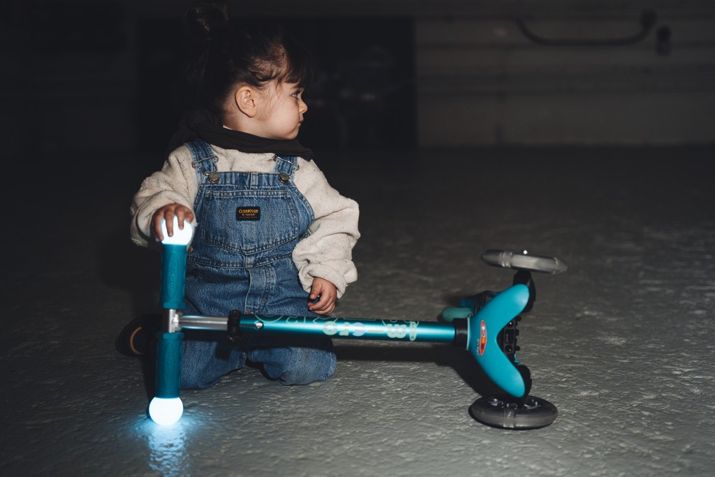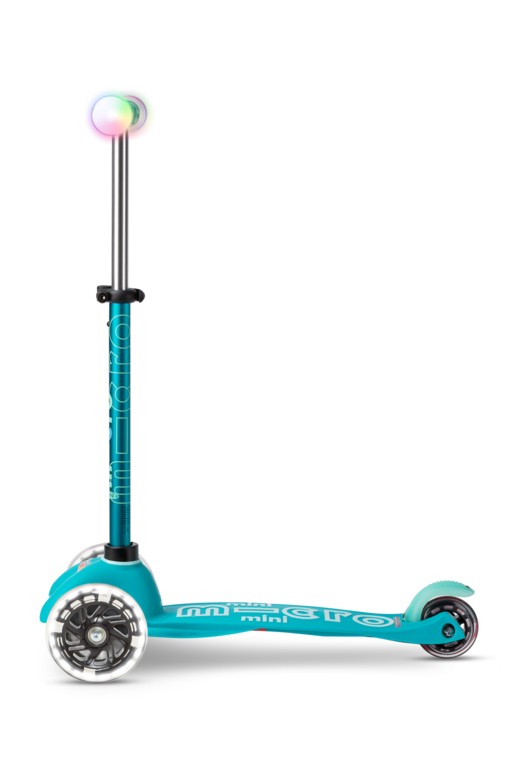 For children 2 to 5 years old Max Load: 50kg Three wheels for superior stability Total length: 550mm Wheel size: 120/80mm Wheel Material: PU Tbar Height: 49cm - 67cm Tbar Removable and Adjustable Product Weight: 2,13 kg Available colours: Aqua and PinkMagic driving fun on three wheels! As soon as your child touches the handlebar of the Mini Micro Deluxe Magic, the integrated touch sensor makes the LED lights on the handlebar shine in five different colours. This not only increases the fun factor, but also the visibility and safety in the dark. In addition, the scooter with its patented steering system promotes balance, coordination and motor skills. The anti-slip coating on the running board ensures a secure footing and the height-adjustable steering bar ensures maximum driving comfort. The robust light balls are made of shock-absorbing plastic and are waterproof. The batteries can be easily replaced thanks to a simple twist lock.