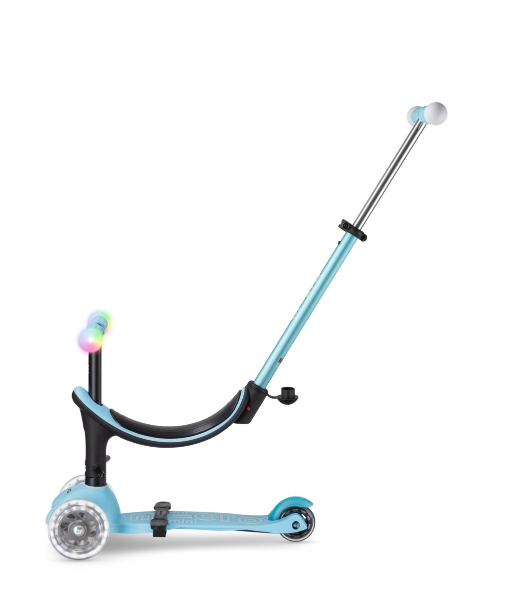 For children 1 to 6 years old Max Load: 20kg with seat & 50kg without seat Three wheels for superior stability Deck Size: 11x30cm Deck Material: PP, TPR, PA, GF30 Wheel size: 120/80mm Wheel Material: PU with LED Tbar Height: 45-79cm Tbar Adjustable and Exchangeable Seat: 24cm Product Weight: 2,18 – 3.48 kg Available colours: Mint, Blue,Pink, and Red Swiss designAll-in-one deluxe scooter for the first years of life