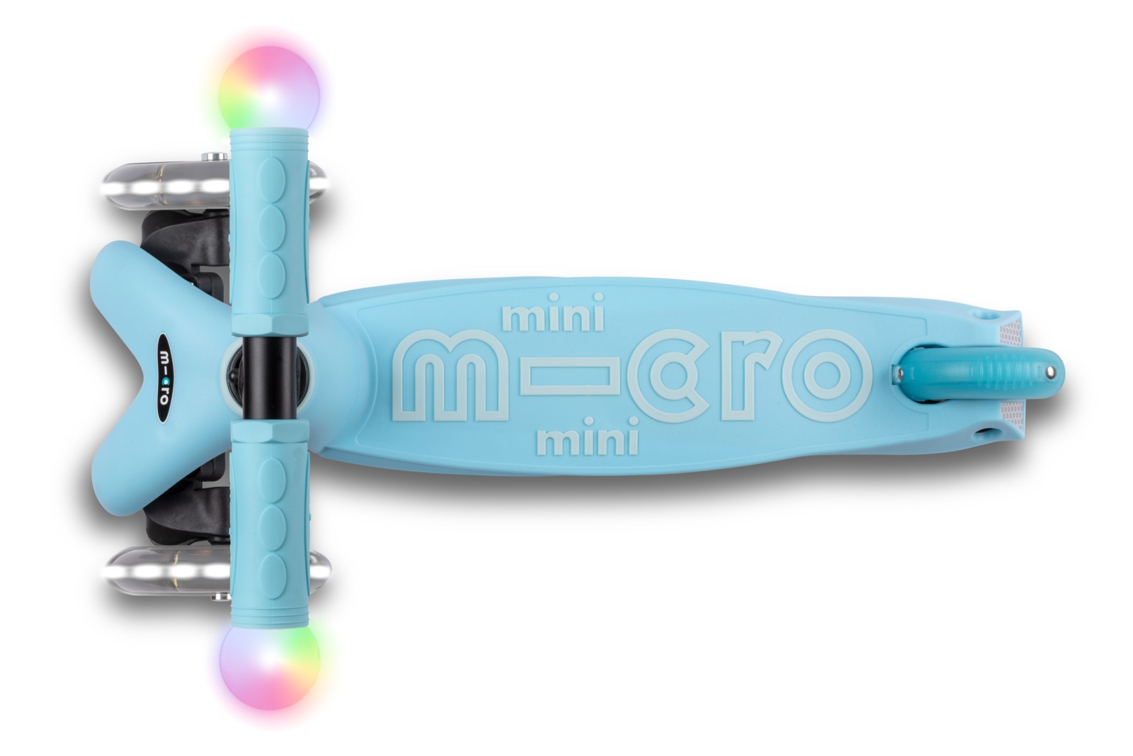 with magic LED light bulbs on the handlebar and LED moon wheels. The push bar for